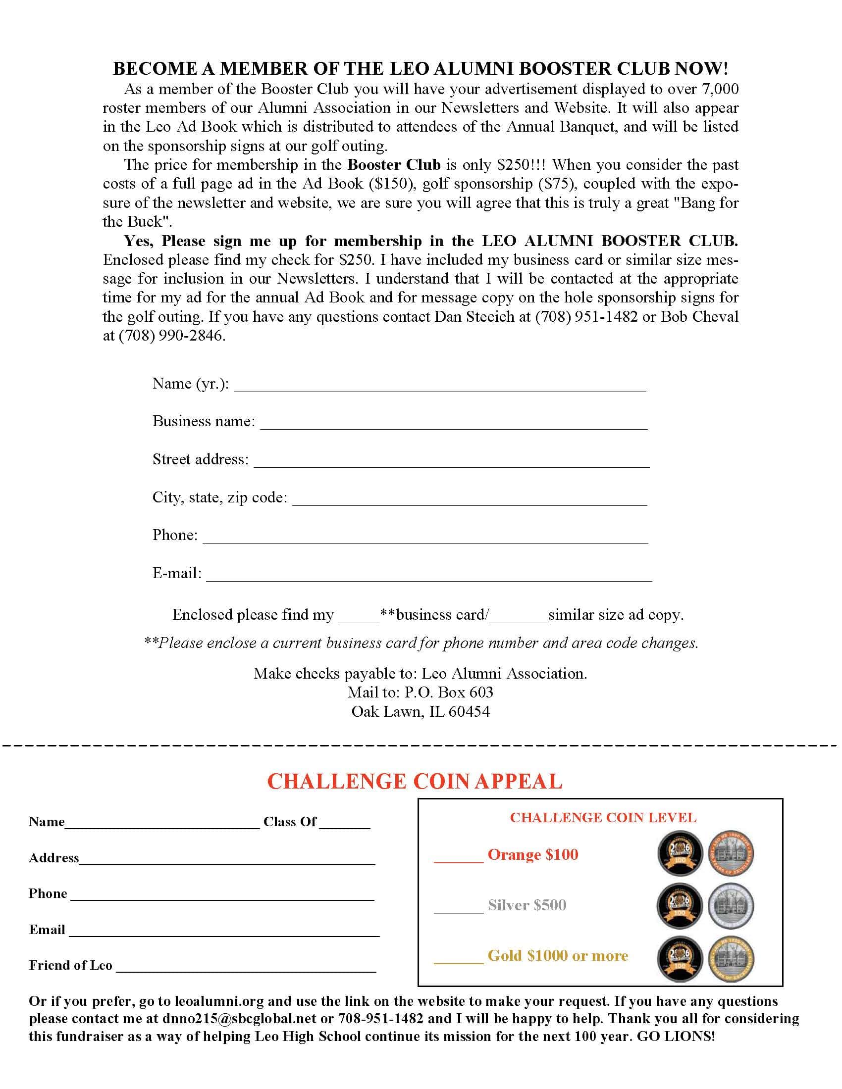 Leo Alumni, One Hundred Thousand Dollar, Challenge Coin Initiative